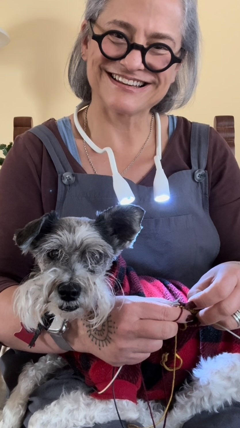 The little light that does everything that that I hoped it would! In addition to lighting up my knitting it bends and twists into all kinds of shapes, & stands on its own to light up my computer keyboard… and it’s very cute and modern looking! Love, love the textured zipper case ~