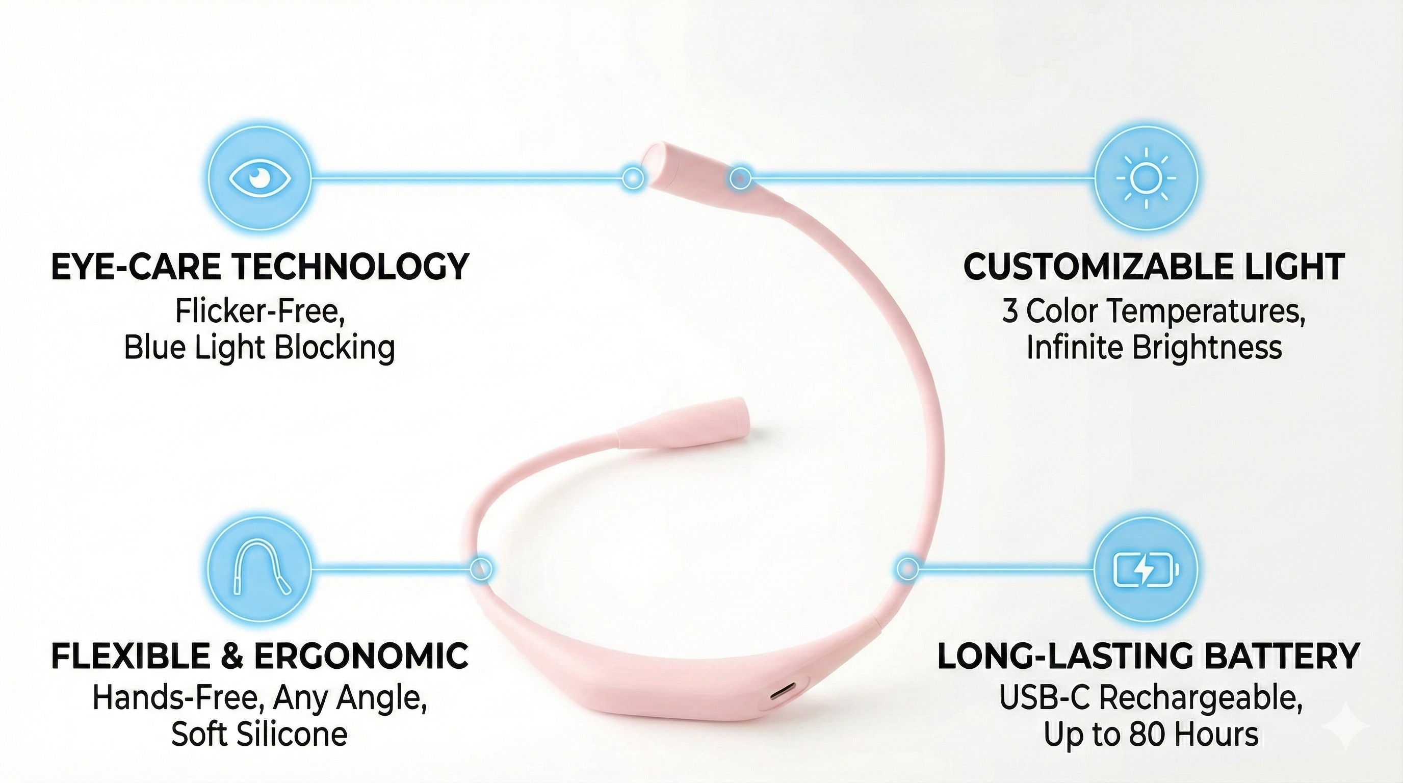 Flexible & Ergonomic: The soft silicone design is adjustable at Any Angle, letting you direct the light exactly where you need to focus without using your hands.